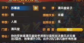 我前几日清号了..已经到最后一个阶段了...离开前送给大家APC门派1000好友特长...算是告别礼...清风加法很简单.先加云门派APC就可以加了丹青应该很多人都知道了..同上.也很多人都知道了...但是大家可能认为只能用于罗刹塔..但是同样独步可以用了...我不知道算不算是B